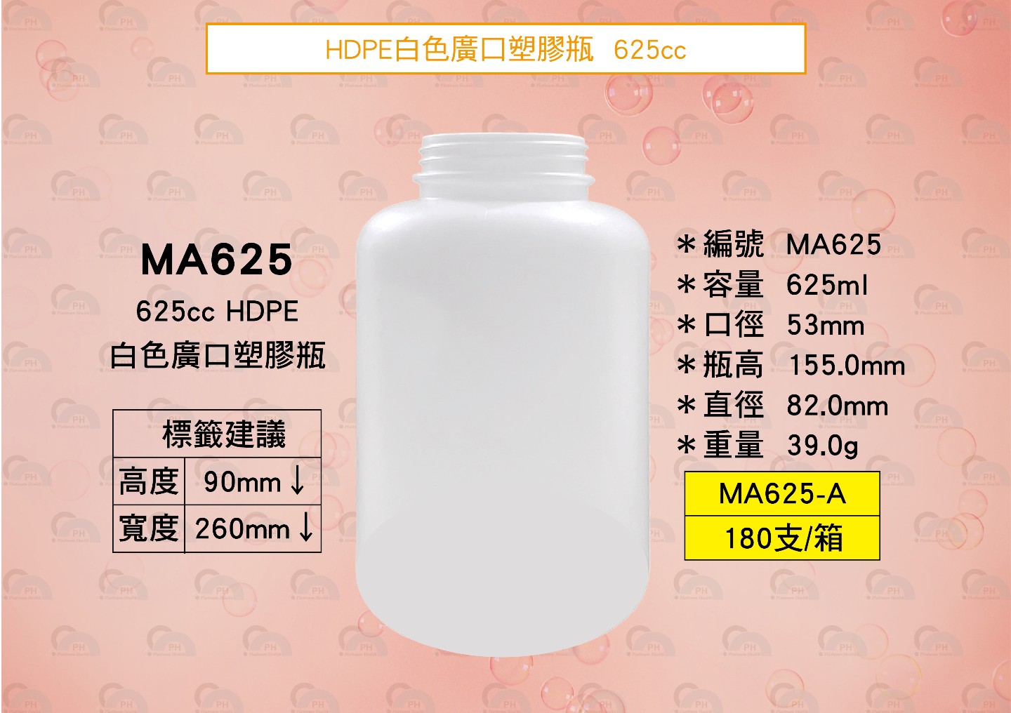 MA625 HDPE白色廣口塑膠瓶