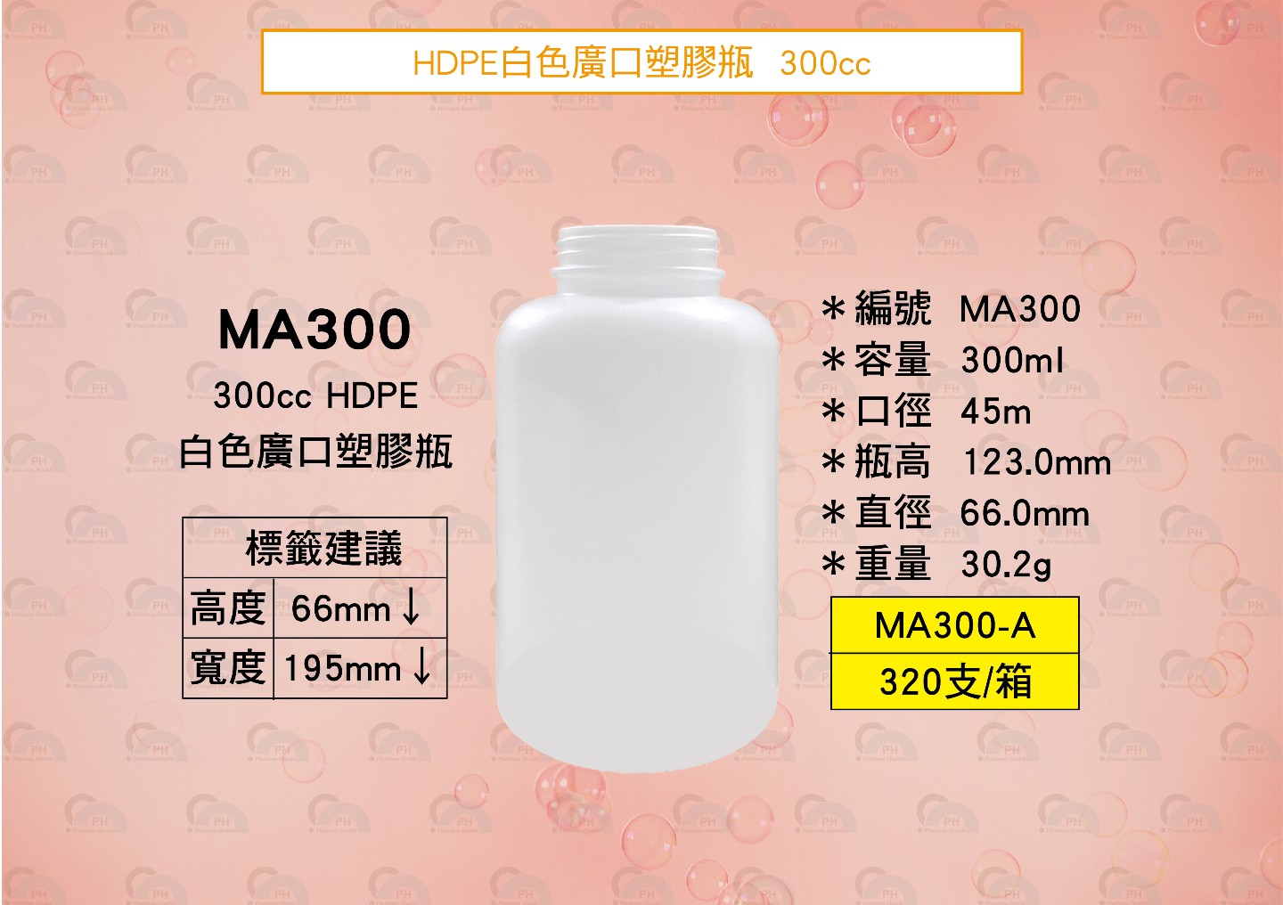 MA300 HDPE白色廣口塑膠瓶