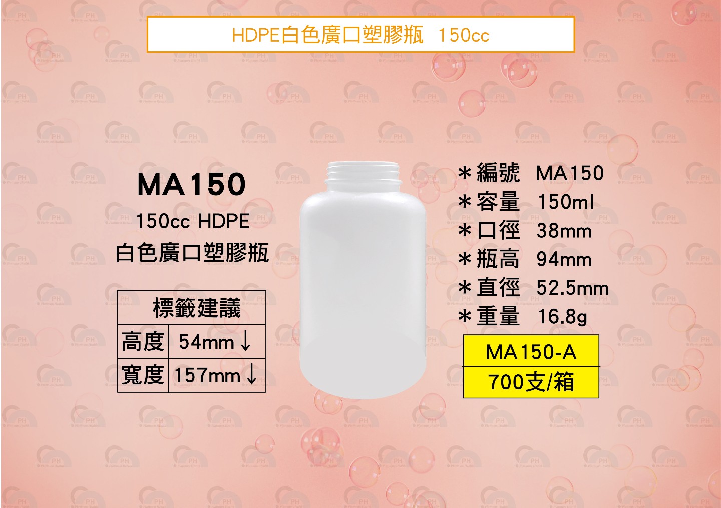 MA150 HDPE白色廣口塑膠瓶